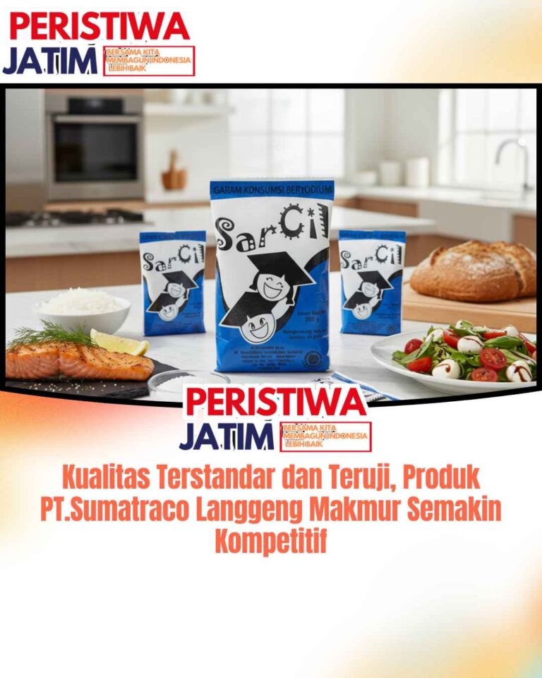 www.peristiwaJatim.com.ǁSurabaya,21 Februari 2026-Perusahaan industri pengolahan garam, PT.Sumatraco Langgeng Makmur, terus memperkuat posisinya sebagai salah satu produsen garam berkualitas tinggi di Indonesia. Berbasis pabrik di Surabaya, perusahaan ini menunjukkan komitmen kuat terhadap standar mutu, inovasi teknologi, dan pengembangan pasar internasional. Di bawah kepemimpinan Direktur Nurhadi Wiyono, PT.Sumatraco Langgeng Makmur tidak hanya fokus pada peningkatan kapasitas produksi,…