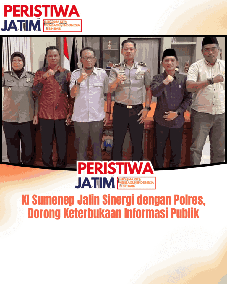 www.peristiwaJatim.com.ǁSumenep,31 Maret 2026-Komisi Informasi (KI) Kabupaten Sumenep, Madura, terus memperluas sinergi dengan badan publik. Kali ini, KI Sumenep melakukan visitasi ke Kepolisian Resor (Polres) Sumenep pada Senin (30/3/2026). Kedatangan komisioner KI Sumenep disambut langsung Kapolres Sumenep, AKBP Anang Hardiyanto. Pertemuan tersebut membahas penguatan keterbukaan informasi publik serta peningkatan pelayanan kepada masyarakat. Dalam kunjungan itu, empat komisioner KI Sumenep turut hadir, yakni Rifai, Winanto, Ahmad Ainol Horri, dan Hadani…