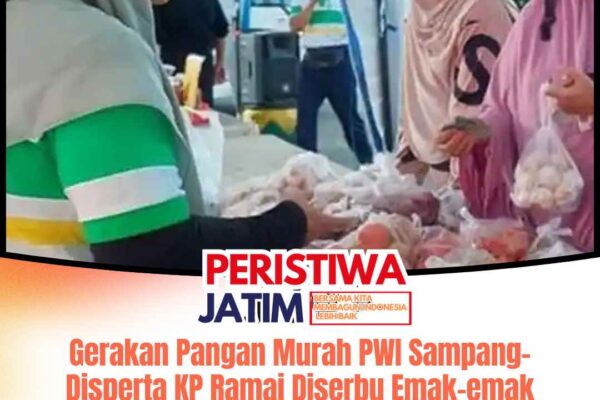 www.peristiwaJatim.com.ǁSampang,9 Maret 2026-Suasana di depan Pendopo Trunojoyo, Kabupaten Sampang, Madura, tampak ramai pada Senin (9/3/2026) pagi. Ratusan warga, didominasi ibu-ibu, berbondong-bondong mendatangi lokasi Gerakan Pangan Murah (GPM) yang digelar oleh Persatuan Wartawan Indonesia (PWI) Sampang serta Dinas Pertanian dan Ketahanan Pangan (Disperta-KP) Sampang. Kegiatan yang dimulai pukul 08.00 WIB hingga itu langsung diserbu masyarakat. Sejak lapak dibuka, para ibu-ibu terlihat…