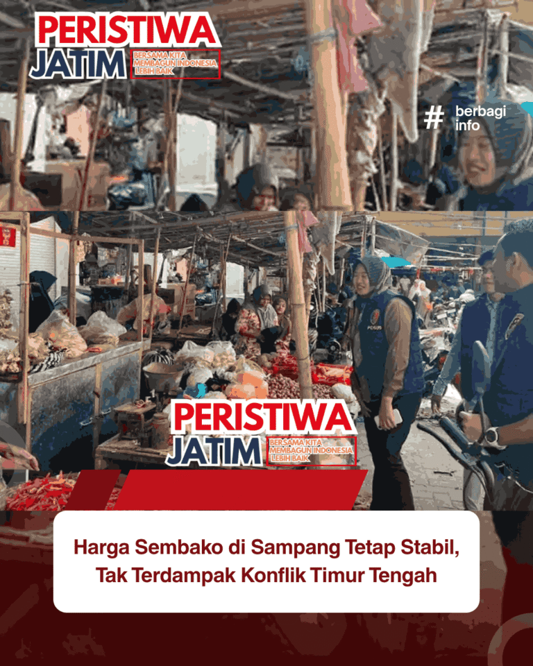 www.peristiwaJatim.com.ǁSampang,12 April 2026-Gejolak konflik di kawasan Timur Tengah belum berdampak langsung terhadap harga bahan pokok di pasar tradisional Kabupaten Sampang, Madura, Minggu (12/4/2026). Hingga saat ini, kondisi harga pangan di daerah bertajuk Bumi Bahari masih terbilang stabil. Staf Bidang Perdagangan Dinas Koperasi, Perindustrian, dan Perdagangan (Diskopindag) Sampang, Imam Sufriady, mengatakan, fluktuasi harga di tingkat lokal lebih dipengaruhi faktor internal, seperti hasil produksi…