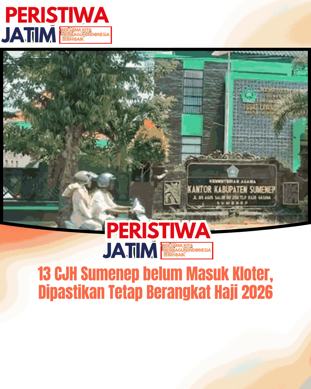 www.peristiwaJatim.com.ǁSumenep,2 April 2026-Sebanyak 13 Calon Jemaah Haji (CJH) asal Kabupaten Sumenep, Madura, hingga kini belum masuk dalam kelompok terbang (kloter) untuk musim haji 2026.