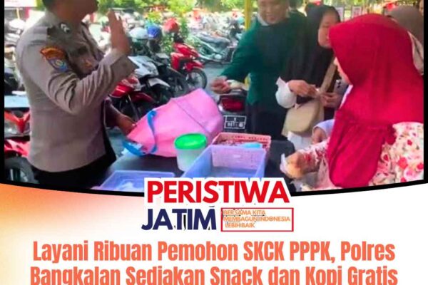 www.peristiwaJatim.com.ǁBangkalan,20 September 2025-Pemandangan berbeda dalam sepekan terakhir tersaji di depan kantor pelayanan Surat Keterangan Catatan Kepolisian (SKCK) Polres Bangkalan. Selain dipenuhi masyarakat pemohon surat keterangan berkelakuan baik, ada pula meja yang disiapkan untuk tempat makanan ringan hingga kopi yang ditempatkan di pusat antrian warga pemohon SKCK. Para pemohon SKCK didominasi masyarakat yang dinyatakan telah lulus sebagai…