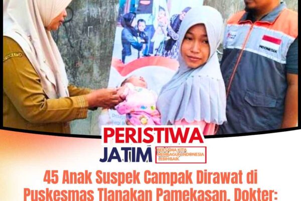 www.peristiwaJatim.com.ǁPamekasan,9 September 2025-Puskesmas Tlanakan, Kabupaten Pamekasan, Madura merawat sebanyak 45 anak yang terduga penyakit campak selama Agustus 2025. Dari 45 anak yang dirawat ini, satu anak meninggal dunia usai dirawat di rumah sakit umum daerah Pamekasan. Kepala Puskesmas Tlanakan, dr Henny Setyowati menjelaskan, Kecamatan Tlanakan termasuk daerah yang lumayan banyak kasus suspek campak. Selama Agustus 2025, dia mengaku banyak merawat pasien terduga campak sebanyak…