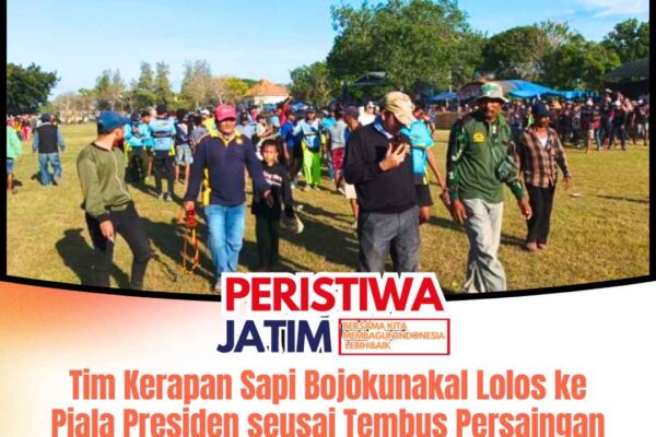 www.peristiwaJatim.com.ǁSampang,14 September 2025-Perjalanan Tim Bojokunakal Laskar Mojopahit asal Desa/Kecamatan Torjun, Kabupaten Sampang, Madura menjadi salah satu cerita paling menarik dalam gelaran Kerapan Sapi tingkat Kabupaten Sampang 2025. Meski harus puas finis di posisi ketiga golongan atas, tim yang dimotori oleh R.H. Aulia Rahman itu berhasil memastikan diri lolos ke ajang bergengsi Piala Presiden. Sejak awal, Bojokunakal sudah mencuri perhatian…