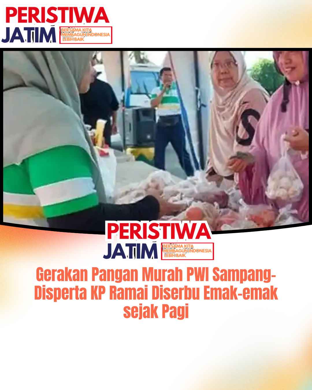 Ratusan warga, didominasi ibu-ibu, berbondong-bondong mendatangi lokasi Gerakan Pangan Murah (GPM) yang digelar oleh Persatuan Wartawan Indonesia (PWI) Sampang serta Dinas Pertanian dan Ketahanan Pangan (Disperta-KP) Sampang.