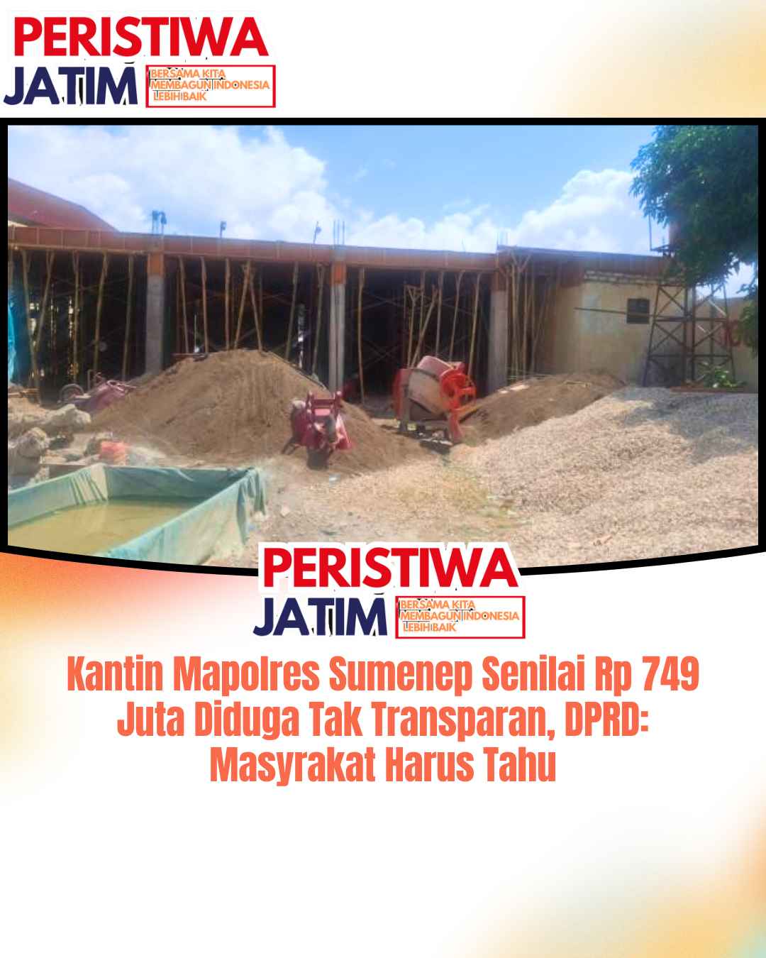 www.peristiwaJatim.com.ǁSumenep,22 September 2025-Proyek pembangunan kantin Mapolres Sumenep senilai Rp 749.999.604 disorot DPRD setempat.