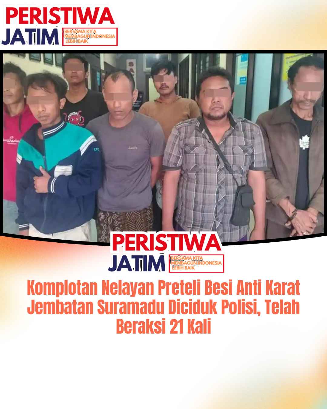 “Dari hasil pemeriksaan, tujuh orang itu melakukan pencurian di Jembatan Suramadu. Identitas yang kami dapatkan dan keterangan yang kami peroleh, mereka memang nelayan,” pugkas Hafid.