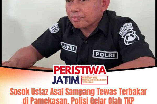 www.peristiwaJatim.com.ǁPamekasan,7 November  2025-Polisi tengah mendalami kasus penemuan jasad pria tewas terbakar di Desa Lesong Daya, Kecamatan Batumarmar, Pamekasan, Madura. Berdasarkan informasi yang berkembang, jasad pria tersebut dikabarkan seorang ustad asal Sampang. Saat ini, Unit Reserse Kriminal Polres Pamekasan bersama polsek setempat masih mendalami motif kejadian tersebut. Polisi Olah TKP Kasihumas Polres Pamekasan AKP Jupriadi mengatakan bahwa, bahwa olah tempat kejadian perkara (TKP) telah dilakukan. Beberapa barang bukti telah diamankan,…